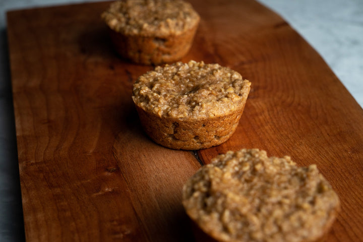 We use old fashioned oats, almond milk, pure maple syrup, bananas, peanut butter and a little bit of brown sugar. GET IN MY BELLY! (Comes with 3)