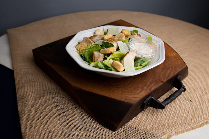 We have our caesar salad with chicken breast, romaine lettuce, parmesan cheese, croutons, and caesar dressing